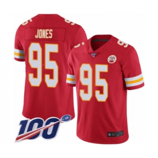 Men's Kansas City Chiefs #95 Chris Jones Red Team Color Vapor Untouchable Limited Player 100th Season Football Jersey
