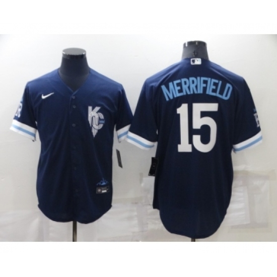 Men's Kansas City Royals #15 Whit Merrifield 2022 Navy Blue City Connect Cool Base Stitched Jersey
