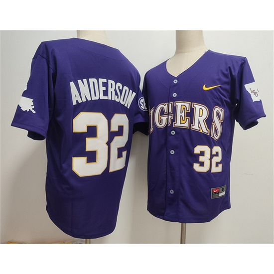 >Men's LSU Tigers #32 Kade Anderson Purple 2025 Stitched Baseball Jersey