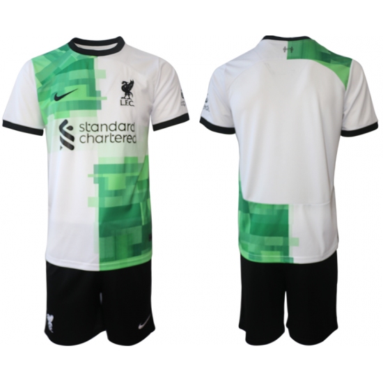 Men's Liverpool Blank 2023-24 White Green Away Soccer Jersey
