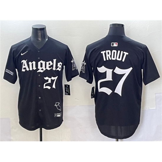 Men's Los Angeles Angels #27 Mike Trout Black Lights Out Limited Stitched Baseball Jersey