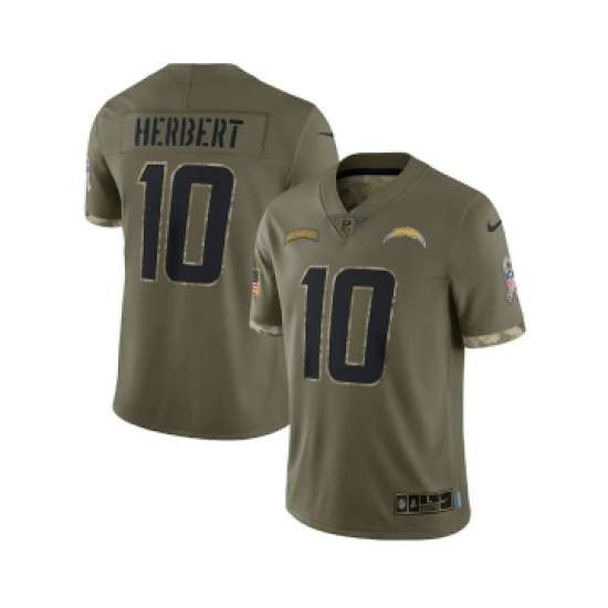 >Men's Los Angeles Chargers #10 Justin Herbert 2022 Olive Salute To Service Limited Stitched Jersey