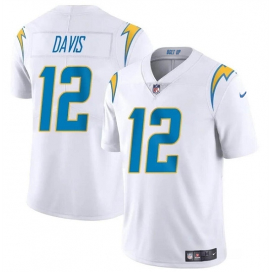 >Men's Los Angeles Chargers #12 Derius Davis White 2024 Vapor Limited Football Stitched Jersey