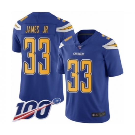 >Men's Los Angeles Chargers #33 Derwin James Limited Electric Blue Rush Vapor Untouchable 100th Season Football Jersey