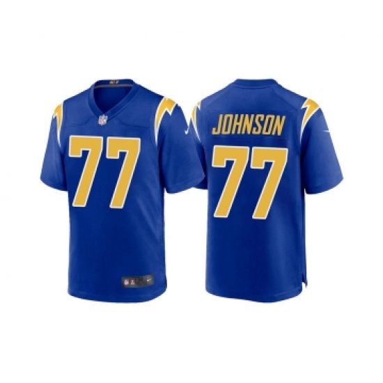 >Men's Los Angeles Chargers #77 Zion Johnson Royal Limited Stitched Jersey