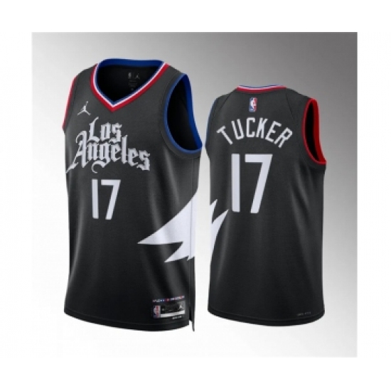 >Men's Los Angeles Clippers #17 P.j. Tucker Black Statement Edition Stitched Jersey