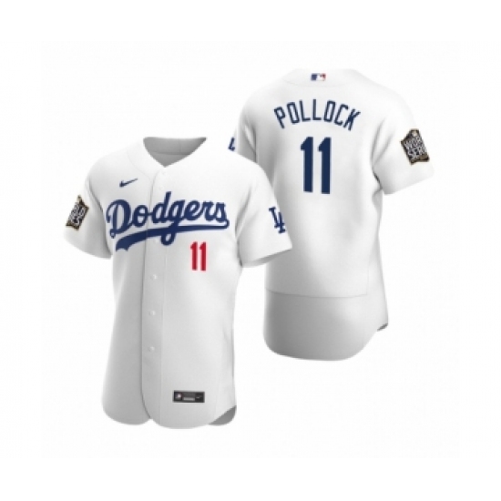 >Men's Los Angeles Dodgers #11 A.J. Pollock Nike White 2020 World Series Authentic Jersey