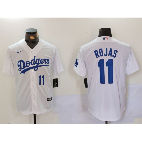 >Men's Los Angeles Dodgers #11 Miguel Rojas Number White Cool Base Stitched Jerseys