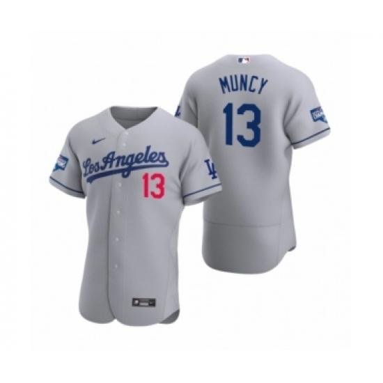 >Men's Los Angeles Dodgers #13 Max Muncy Gray 2020 World Series Champions Road Authentic Jersey