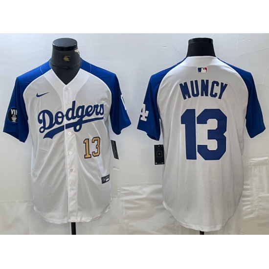 Men's Los Angeles Dodgers #13 Max Muncy Number White Blue Fashion Stitched Cool Base Limited Jerseys