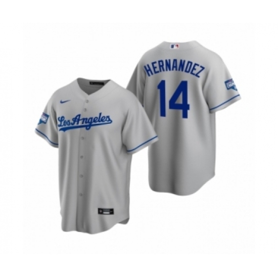 Men's Los Angeles Dodgers #14 Enrique Hernandez Gray 2020 World Series Champions Road Replica Jersey