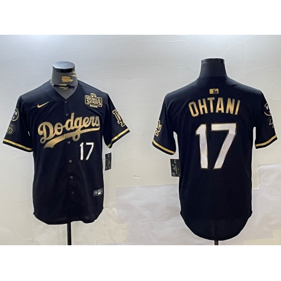 Men's Los Angeles Dodgers #17 Shohei Ohtani Black Gold 2024 World Series Champions Cool Base Stitched Baseball Jersey