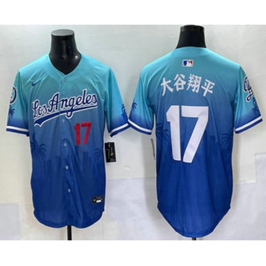 Men's Los Angeles Dodgers #17 Shohei Ohtani Japanese Blue 2025 City Connect Limited Stitched Jersey