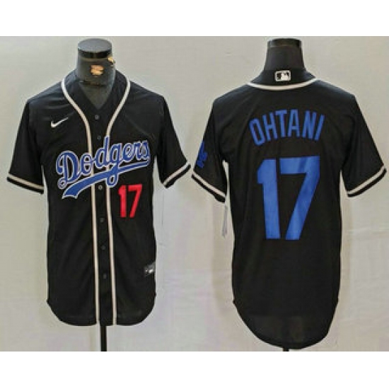 >Men's Los Angeles Dodgers #17 Shohei Ohtani Number Black Cool Base With Stitched Baseball Jersey