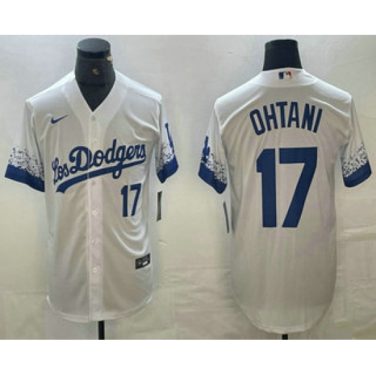 Mens Los Angeles Dodgers #17 Shohei Ohtani Number White City Connect Cool Base Stitched Jersey