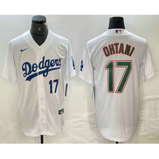 Men's Los Angeles Dodgers #17 Shohei Ohtani Number White Green Stitched Cool Base Nike Jerseys