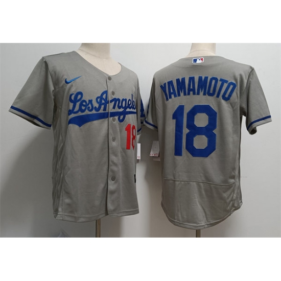 >Men's Los Angeles Dodgers #18 Yoshinobu Yamamoto Nike Grey Los Angeles FlexBase Jersey