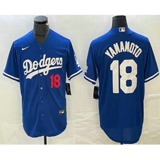 Men's Los Angeles Dodgers #18 Yoshinobu Yamamoto Number Blue Stitched Cool Base Nike Jersey