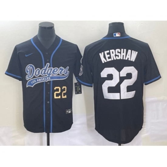 >Men's Los Angeles Dodgers #22 Clayton Kershaw Number Black Cool Base Stitched Baseball Jersey