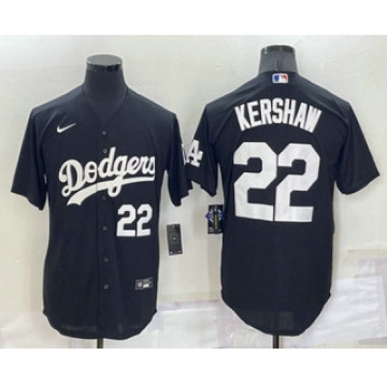 >Men's Los Angeles Dodgers #22 Clayton Kershaw Number Black Turn Back The Clock Stitched Cool Base Jersey