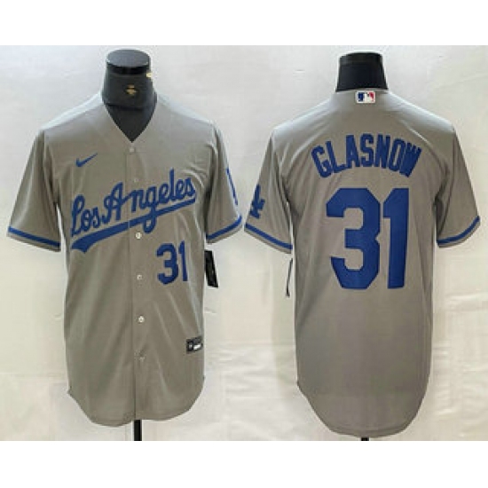 Men's Los Angeles Dodgers #31 Tyler Glasnow Gray Alternate Player Number Team Logo Cool Base Jersey