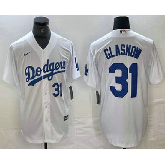 Men's Los Angeles Dodgers #31 Tyler Glasnow Number White Stitched Cool Base Nike Jersey