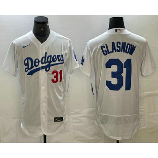 Men's Los Angeles Dodgers #31 Tyler Glasnow Number White Stitched Flex Base Nike Jersey