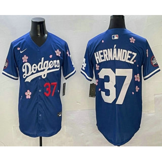 >Men's Los Angeles Dodgers #37 Teoscar Hernandez Blue 2025 Tokyo Series Limited Jersey