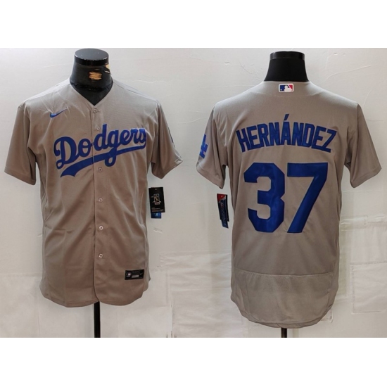 >Men's Los Angeles Dodgers #37 Teoscar Hernandez Grey Flex Base Stitched Jersey
