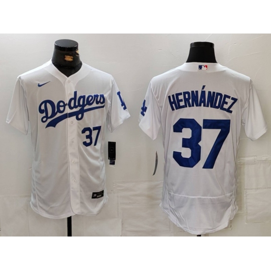 >Men's Los Angeles Dodgers #37 Teoscar Hernandez Number White Flex Base Stitched Jerseys