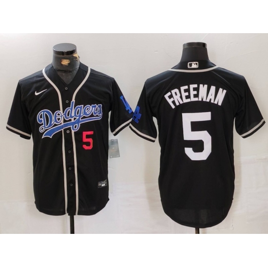 Men's Los Angeles Dodgers #5 Freddie Freeman Number Black Cool Base With Stitched Jersey