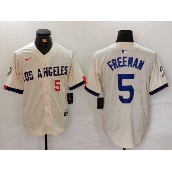 Men's Los Angeles Dodgers #5 Freddie Freeman Number Cream 2024 City Connect Limited Stitched Jersey