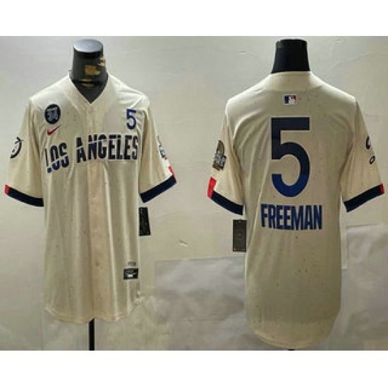 Men's Los Angeles Dodgers #5 Freddie Freeman Number Cream 2024 World Series City Connect Limited Stitched Jersey