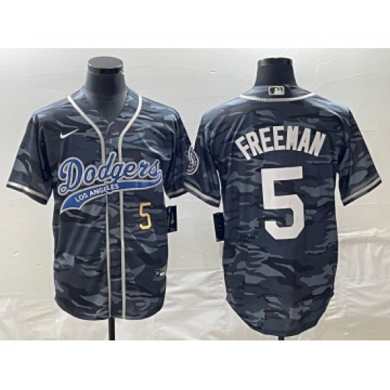 Men's Los Angeles Dodgers #5 Freddie Freeman Number Gray Camo Cool Base Stitched Baseball Jersey