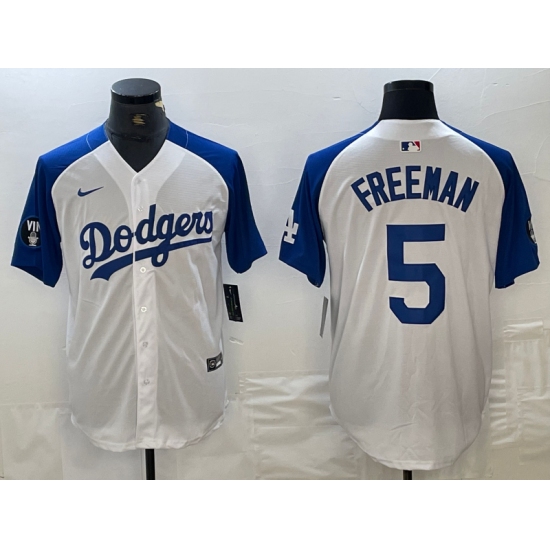 Men's Los Angeles Dodgers #5 Freddie Freeman White Blue Fashion Stitched Cool Base Limited Jerseys