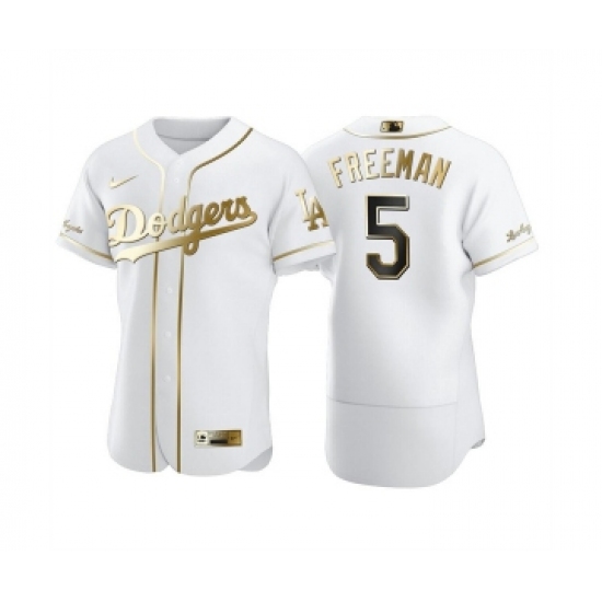 Men's Los Angeles Dodgers #5 Freddie Freeman White Golden Flex Base Stitched Jersey