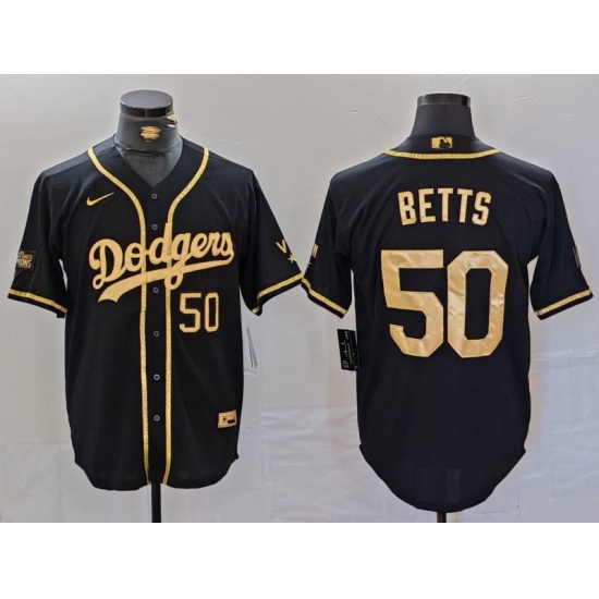 Men's Los Angeles Dodgers #50 Mookie Betts Number Black Gold World Series Champions Cool Base Stitched Jersey