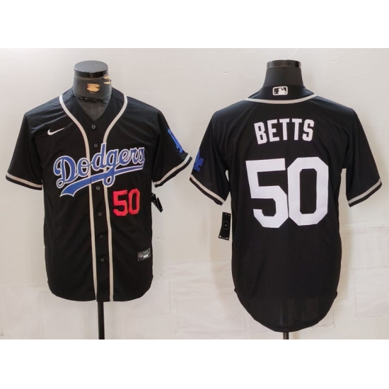 Men's Los Angeles Dodgers #50 Mookie Betts Black Cool Base Stitched Baseball Jersey