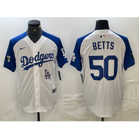 Men's Los Angeles Dodgers #50 Mookie Betts White Blue Fashion Stitched Cool Base Limited Jersey
