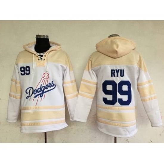 Men's Los Angeles Dodgers #99 Hyun-Jin Ryu White Baseball MLB Hoodie