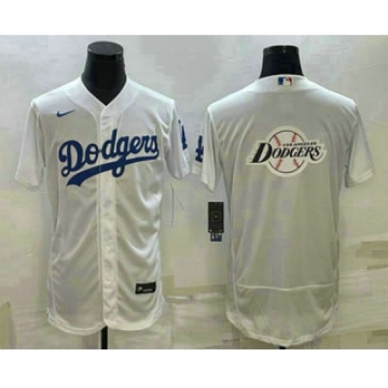 Men's Los Angeles Dodgers Big Logo White Flex Base Stitched Baseball Jersey1