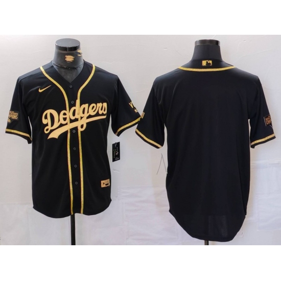 >Men's Los Angeles Dodgers Blank Black Gold World Series Champions Cool Base Stitched Jersey