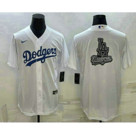>Men's Los Angeles Dodgers White Team Big Logo Cool Base Stitched Baseball Jerseys