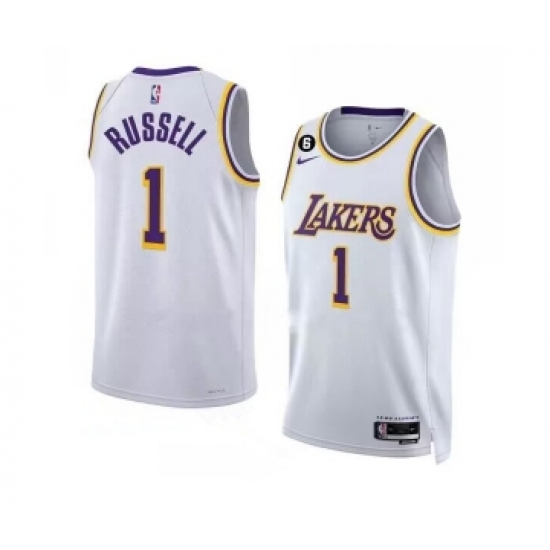 Men's Los Angeles Lakers #1 D’Angelo Russell 2022-23 White With NO.6 Association Edition Swingman Stitched Basketball Jersey