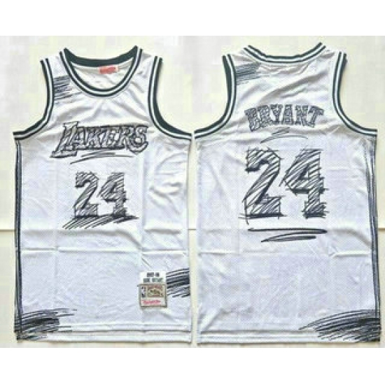Men's Los Angeles Lakers #24 Kobe Bryant White Sketch Swingman Jersey