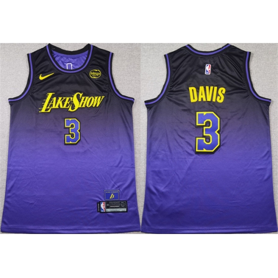 >Men's Los Angeles Lakers #3 Anthony Davis Purple 2024 Stitched Basketball Jersey