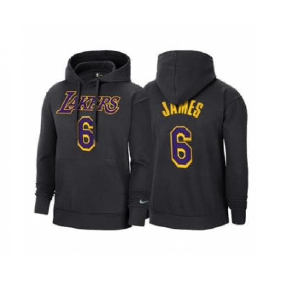 >Men's Los Angeles Lakers #6 LeBron James 2021 Black Pullover Basketball Hoodie 2