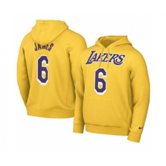 Men's Los Angeles Lakers #6 LeBron James 2021 Yellow Pullover Basketball Hoodie