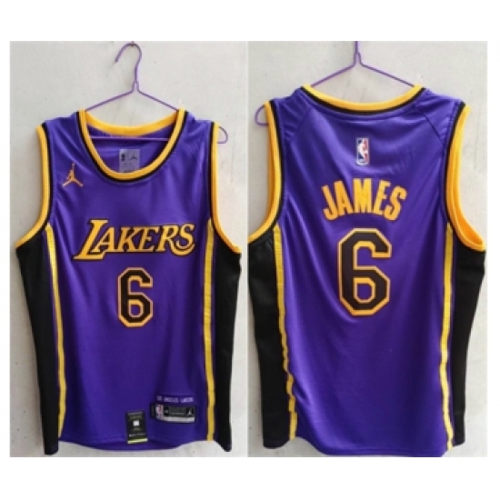 Men's Los Angeles Lakers #6 LeBron James Purple Stitched Basketball Jersey