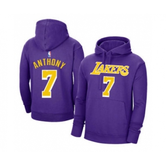 >Men's Los Angeles Lakers #7 Carmelo Anthony 2021 Purple Pullover Basketball Hoodie